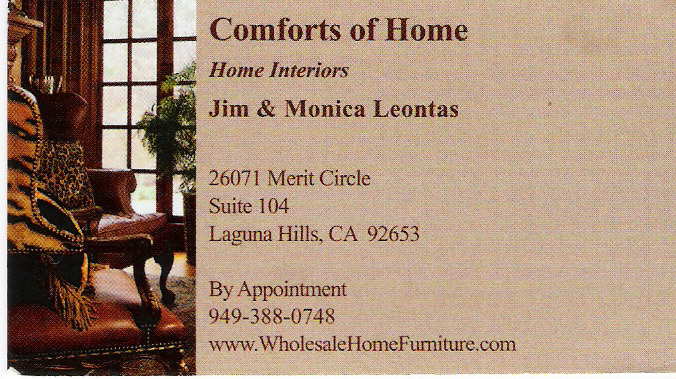 Comforts of Home home furnishings; get the look and quality of retail furniture at wholesale prices; owned and operated by class of 1995 classmate Monica Maurer, now Leontas and her husband, Jim.